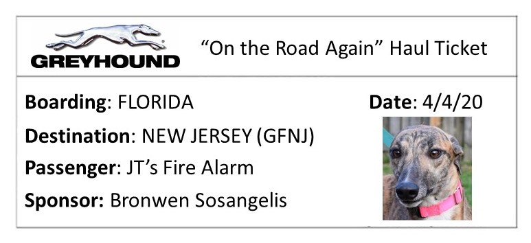 JT's Fire Alarm is a stunning, little girl. She is happy, friendly and calm. Fire Alarm is a real tail-wagger. This little girl smiles and she prances when she walks--how adorable. Fire Alarm is only 20 months old and she is ready for her retirement life already. She is cat tolerant with supervision.