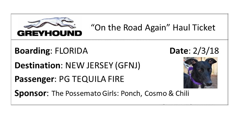Tequila Fire is being rehomed through no fault of hers other than she cannot live with the cat in the family. The adopters have tried to change her mind but with no luck. They described her as "a dream of a dog", loving, cuddley, crates easily, a love bug, and is good with their 7 year old child."