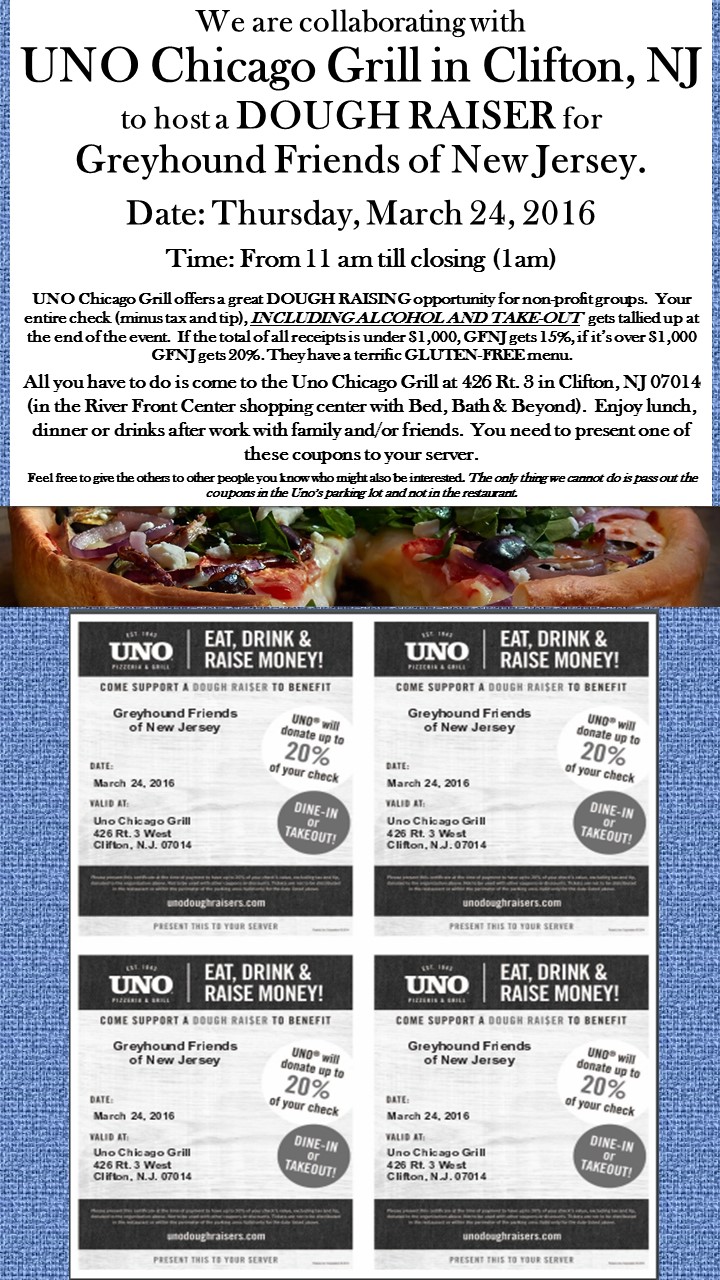 Thursday March 24th, 2016 11:00 AM until Friday March 25th, 2016 01:00 AM Location: UNO Chicago Grill, Clifton, NJ