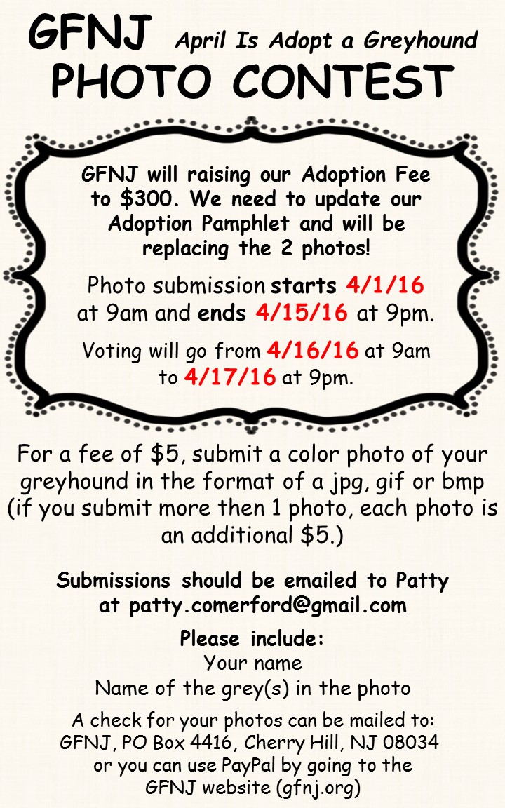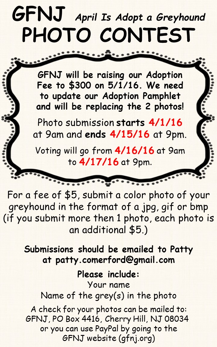 GFNJ April Is Adopt A Greyhound Photo Contest